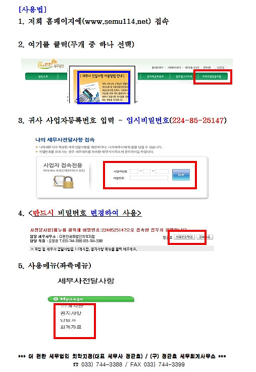 [치악지점] 거래처 세무포털 사용법 (요약)