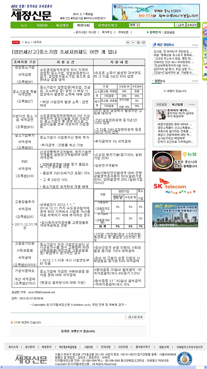 [법인세] 중소기업 조세지원제도