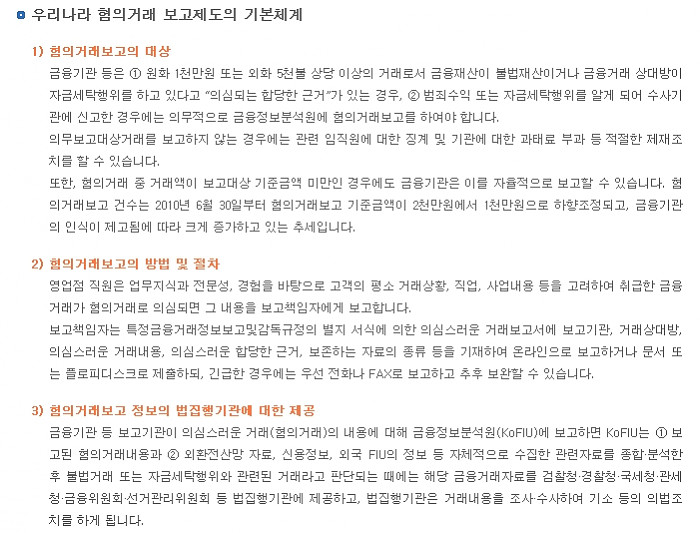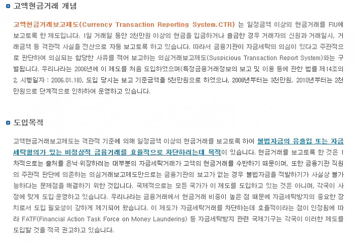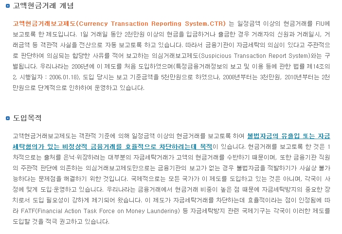 2. 고액현금거래보고제도 (일정금액 이상의 현금거래를 FIU에 보고토록 한 제도)